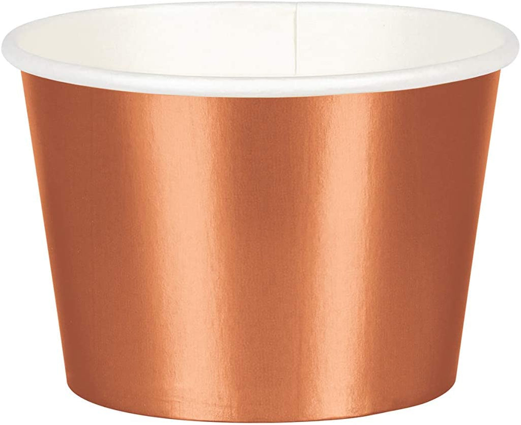 Add a trendy touch to your spread of party foods with help from our Rose Gold Foil Treat Cups. Measuring 2.5In x 3.5In, and made from sturdy boardstock, these are perfepcs for serving snacks and more. Their metallic rose gold foil design is on-trend for any occasion. Our Rose Gold Foil Treat Cups are sold eight per package.
