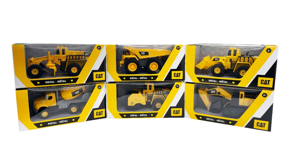 When there’s heavy work to be done the rugged machines in the Cat Metal Assortment are ready to roll. These high quality vehicles are built to live up to the Cat standards for quality product and will stand the test of time. The vehicles are push-powered and like the real Cat machines, feature moving articulated buckets, booms, drums, and rollers. Collect them all!