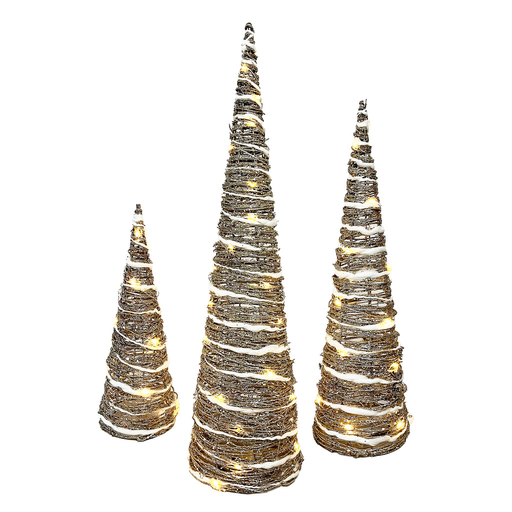 Christmas Metal Tree with Light Set of 3Pcs Battery Operated 40/60/80cm