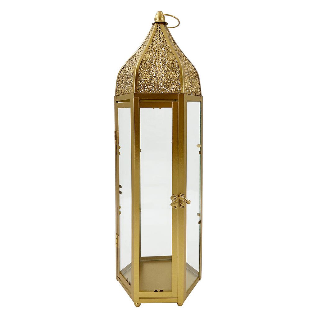 Eid Lantern Candle Holder Gold 16.9x16.9x57cm. Perfect decoration for EID celebration.