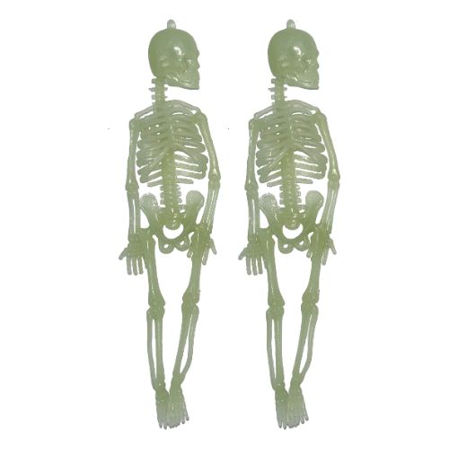 Glow In The Dark Skeletons 20cm 2Pcs/Pk. Skeleton for Halloween full body can glow in the dark to attract people's attention and increase the Halloween atmosphere. Perfect addition to your creepy Halloween decorations.