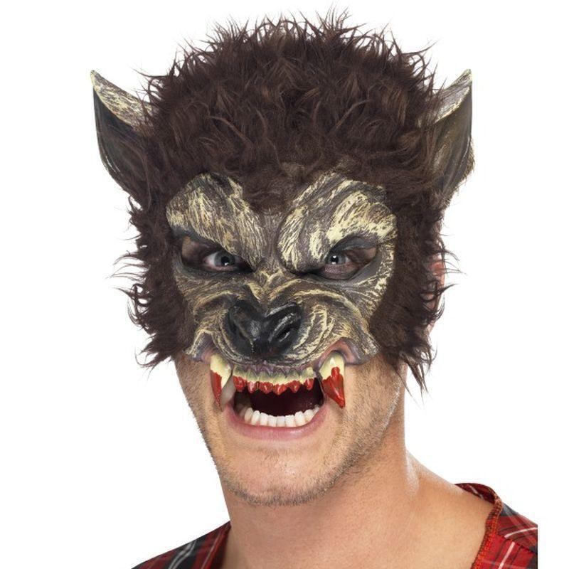 Werewolf Half Face M Mask Brown With Fur & Teeth