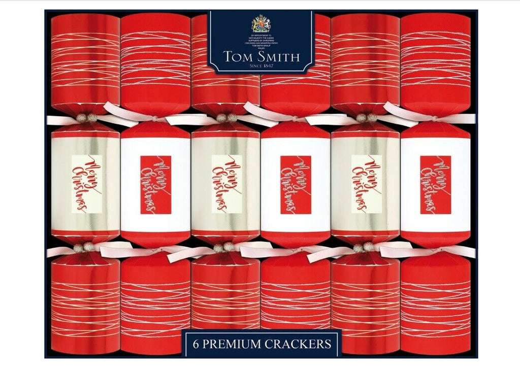Christmas Crackers have been a traditional partner of Christmas Festivies. Great to have a loaugh with everyone around the dinner table at Christmas. 14" Contemporary Foil And Silver. Contains 6 pcs. For those not familiar with Crackers, they contain a paper crown (folded tissue party hat), a motto (British joke or riddle), the cracker-snap, and a small gift or novelty item.