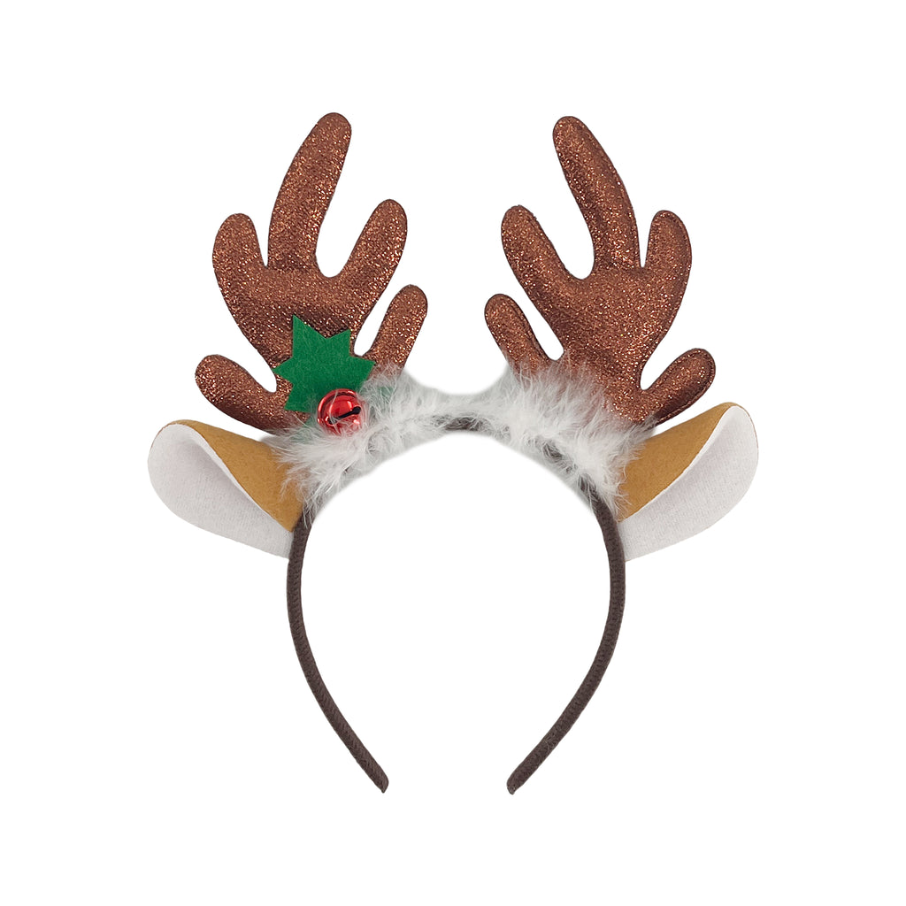 Add a darling touch to the holidays with this fantastic brown reindeer headband! This accessory is a fun , a perfect addition to a holiday party outfit. Gift an antler headband as a party favor so your child can join in on all the reindeer games at your Christmas party!
