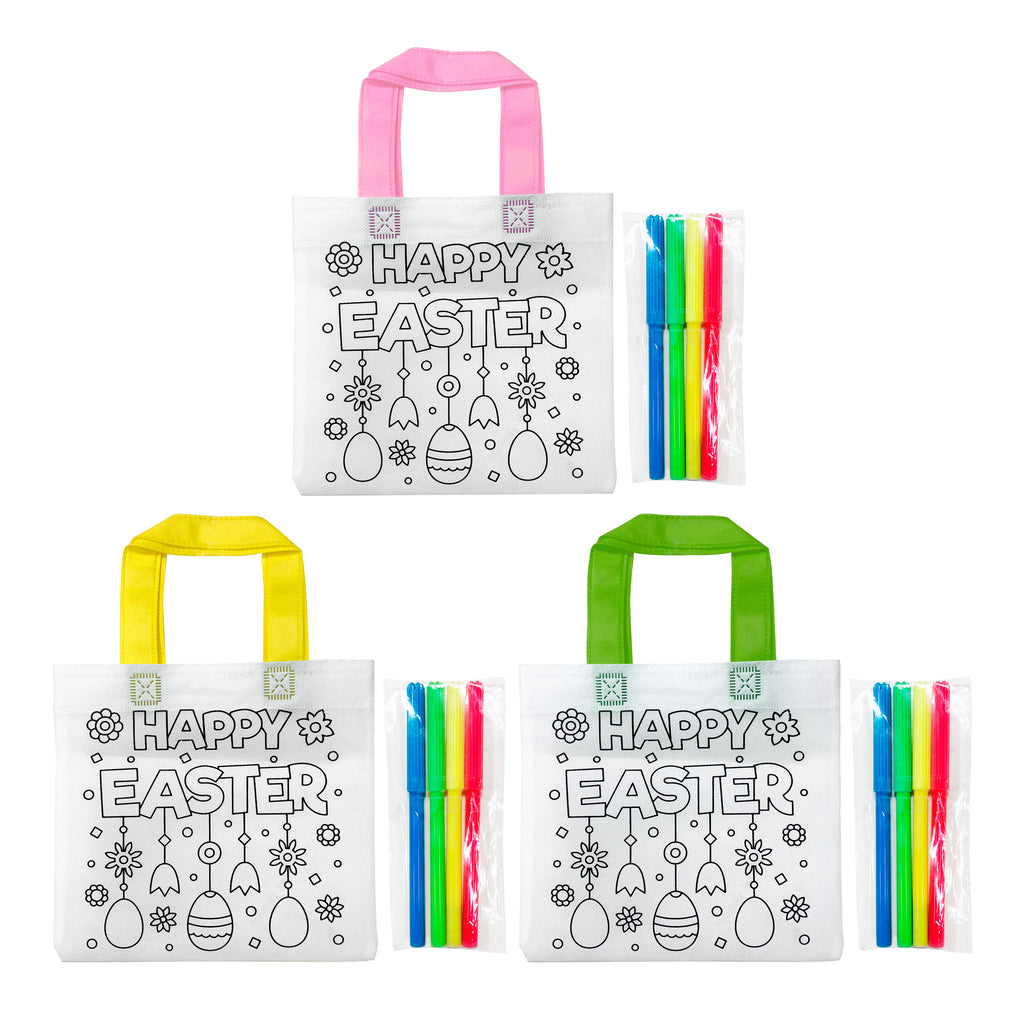 Party Magic Easter Bag fill with candy, Easter eggs, toys or whatever else you want to carry. It is made from plastic. You will need some paper or woodcraft eggs, liquid paint, gallon zip lock style bags and something to rest the wet eggs on to dry. Measurement: 20.5x19.8 cm