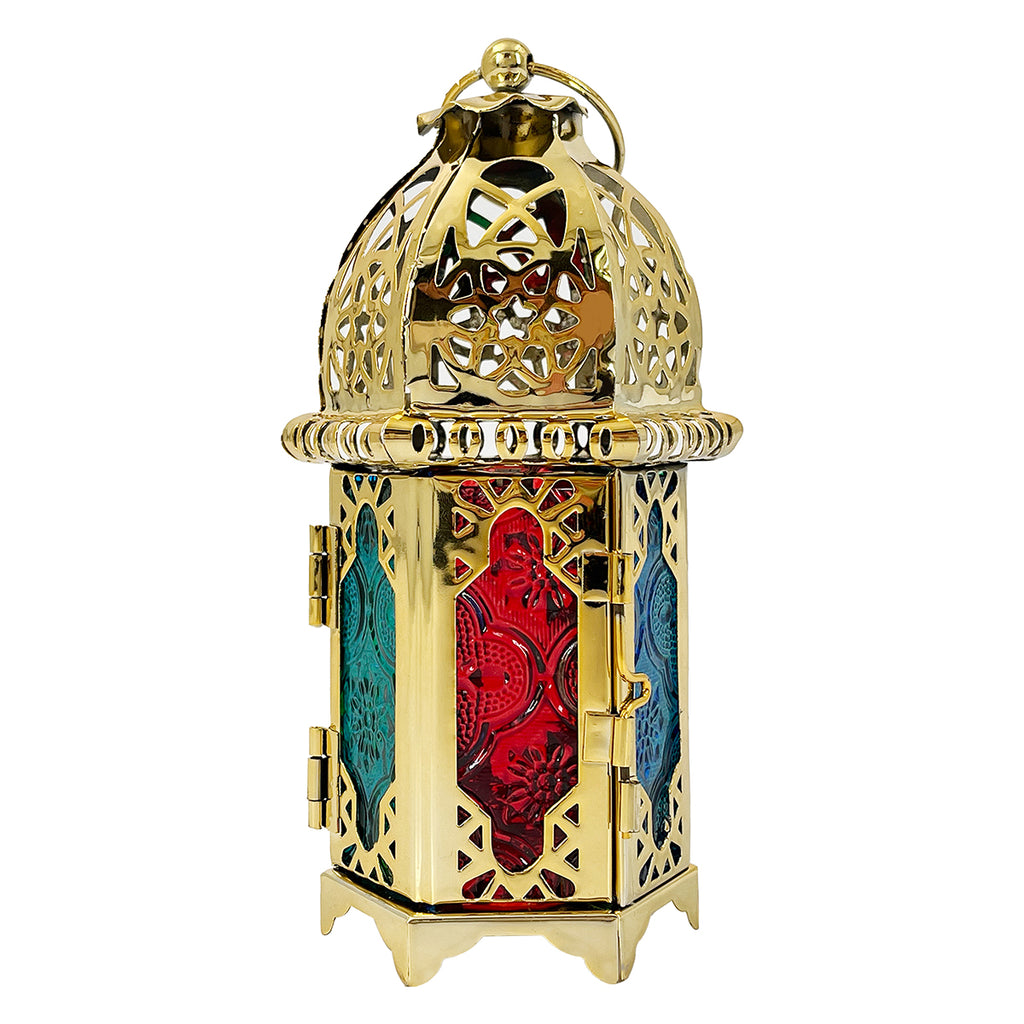Eid Lantern Candle Holder Gold 8x8x16cm. Perfect decoration for EID celebration.