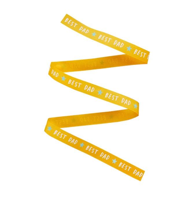 This is one extra special Father's Day ribbon! This gorgeous mustard grosgrain ribbon features white and teal Best Dad print.