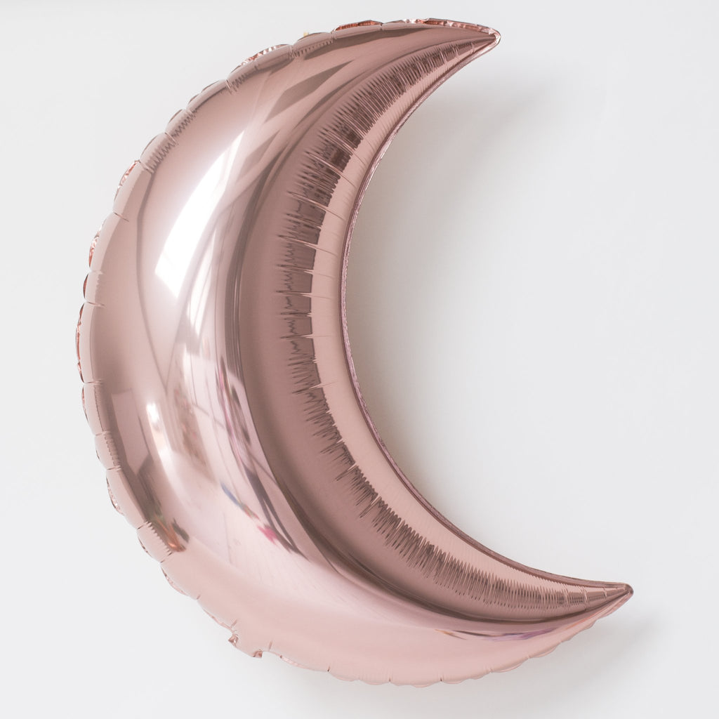 Accent your party decor with this solid color 35" Crescent Moon - Metallic Rose Gold foil mylar balloon. Incorporate this Qualatex large unique shape balloon into a balloon bouquet, on top of balloon columns or other balloon decor. Add color coordinating mylars and latex balloons for the ultimate balloon bouquet! This balloon includes a self-sealing valve, preventing the gas from escaping after it's inflated. The balloon can be inflated with helium to float or with a balloon air inflator to hang. Balloon arrives uninflated.