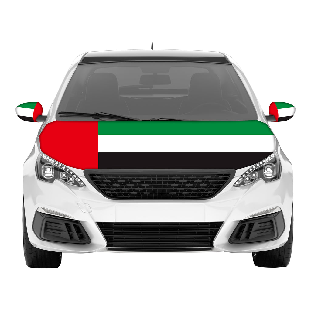 UAE Car Engine & Mirror Hood Set. Car engine hood: 160x120cm. Car mirror hood: 30x32cm. Celebrate UAE National Day in style with this UAE Car Engine & Mirror Hood Set