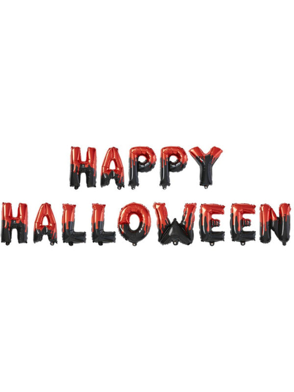 Smiffys Happy Halloween Foil Balloon Letter Garland with Ribbon - Hang these spooky foil balloon garlands up at your party or event this Halloween! They would create an amazing backdrop for photos and give a creepy, haunted feel to your event. Simply inflate with air and attach each letter to the desired position with the ribbon provided.