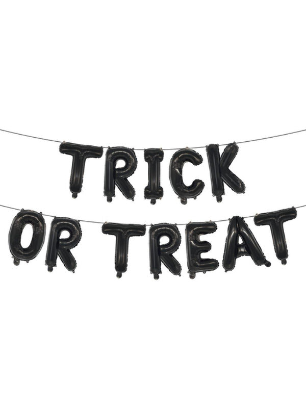 Smiffys Trick or Treat Foil Balloon Letter Garland with Ribbon - Hang these spooky foil balloon garlands up at your party or event this Halloween! They would create an amazing backdrop for photos and give a creepy, haunted feel to your event. Simply inflate with air and attach each letter to the desired position with the ribbon provided.
