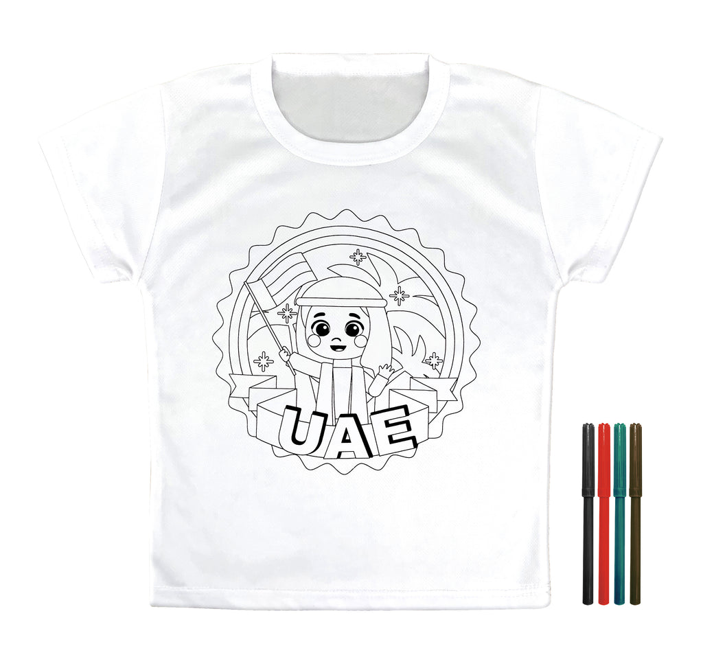 UAE National Day DIY Painting T-shirt. Size Medium. Suitable for age 6 to 7. Color: Multicolor