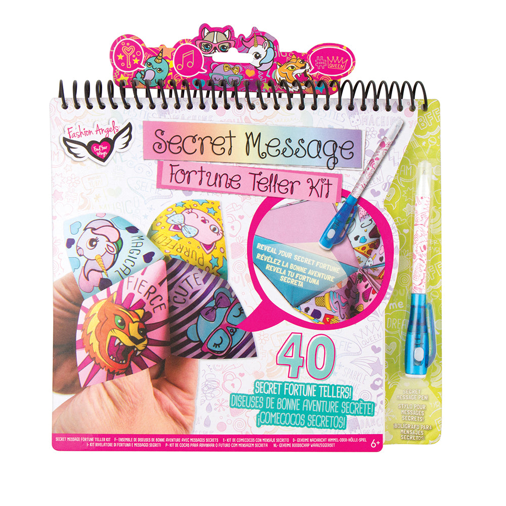 Get the answers to life's important questions with the Secret Message Fortune Teller Kit. This set includes 15 color designs and 25 black and white designs that you color, customize, and fold into paper fortune tellers. Use the stickers included with this set to accent your creations. The ultra-cool, secret component is there is a magical marker to write secret fortunes that are only revealed under the light on the end of the marker. So much creativity and so much fun to be had with this kit!